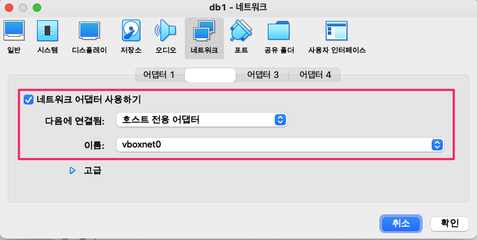 Mac에서 VirtualBox용 호스트전용 어댑터를 활성화하는 방법