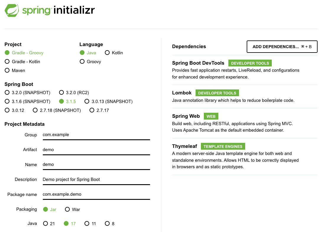 implementation 'org.springframework.boot:spring-boot-starter-thymeleaf'