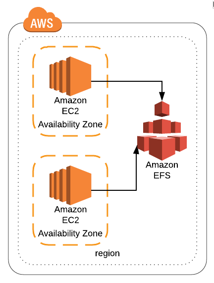 Amazon EFS(Amazon Elastic File System)는 AWS 클라우드 서비스 및 온프레미스 리소스와 함께 사용하기 위한 간단하고 조정 가능하고 탄력적인 완전관리형 NFS 파일 시스템을 제공합니다