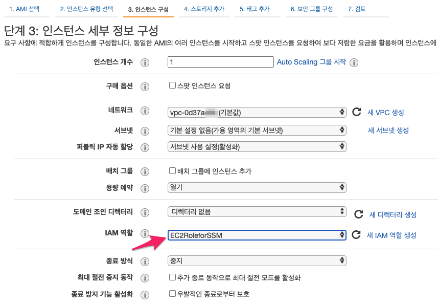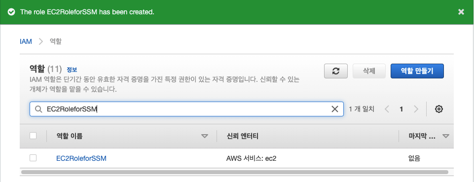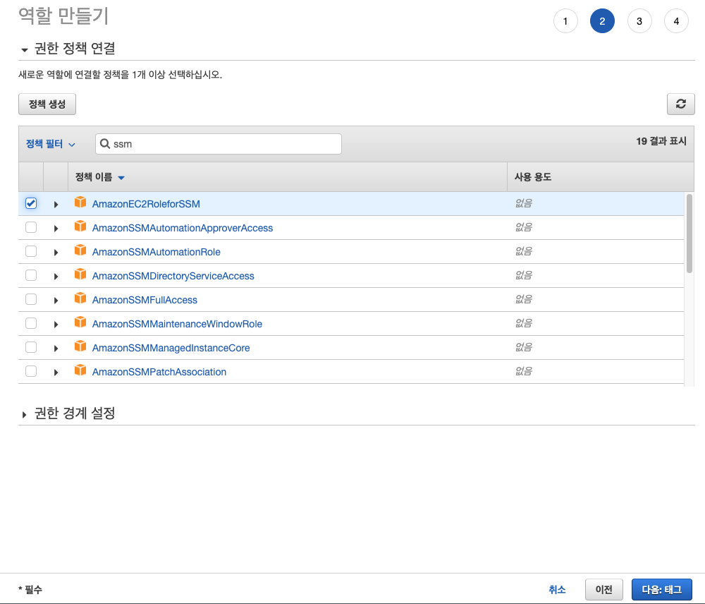- 권한 정책 연결 : AmazonEC2RoleforSSM