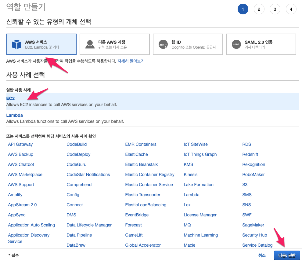 - 사용 사례 선택 : EC2