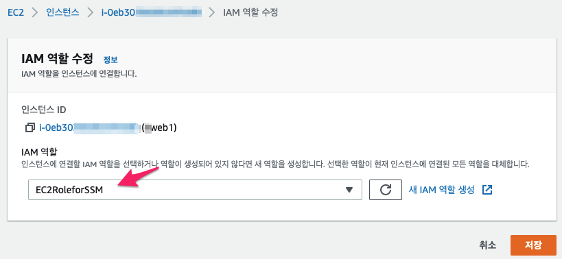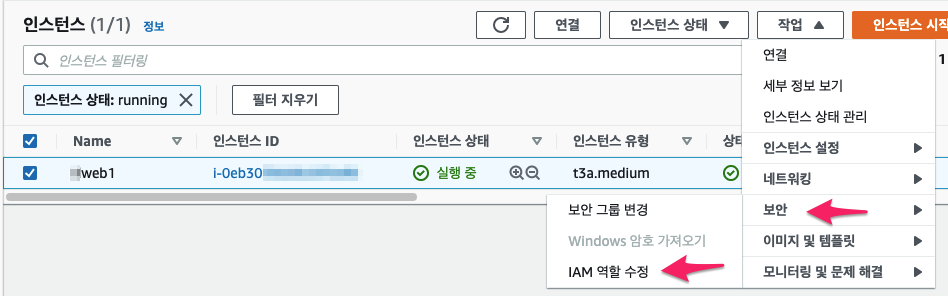 2. 기존 인스턴스에 IAM 역할 추가