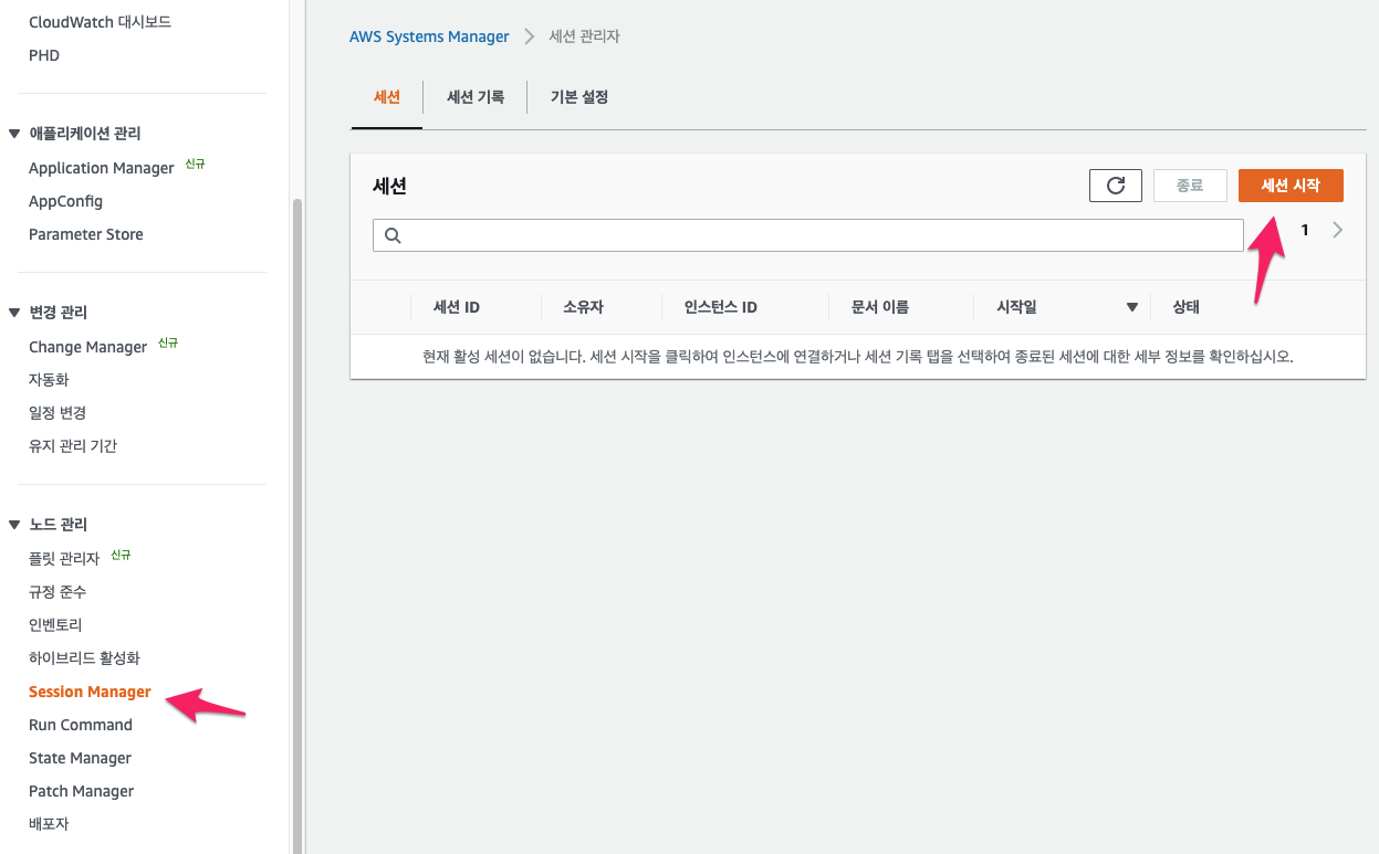 AWS Systems Manager > 세션 관리자