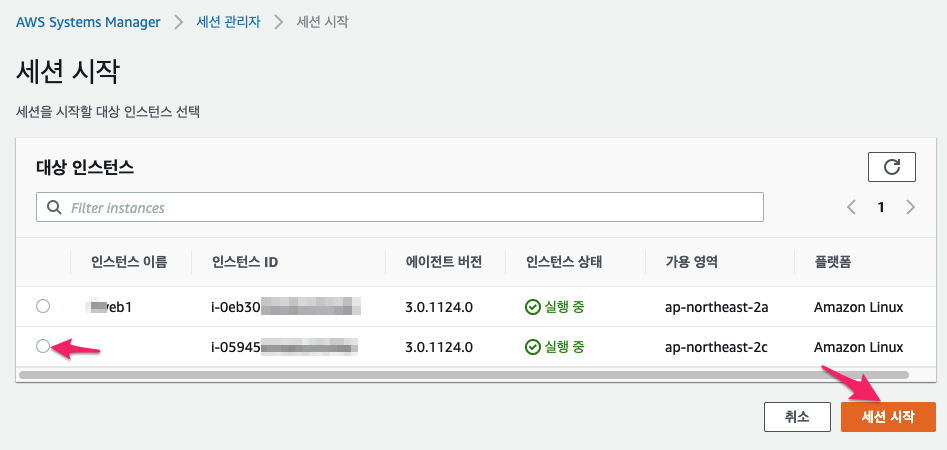 AWS Systems Manager > 세션 관리자 > 세션 시작