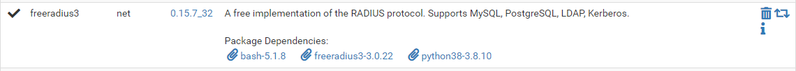 freeradius3 패키지 설치 후 확인