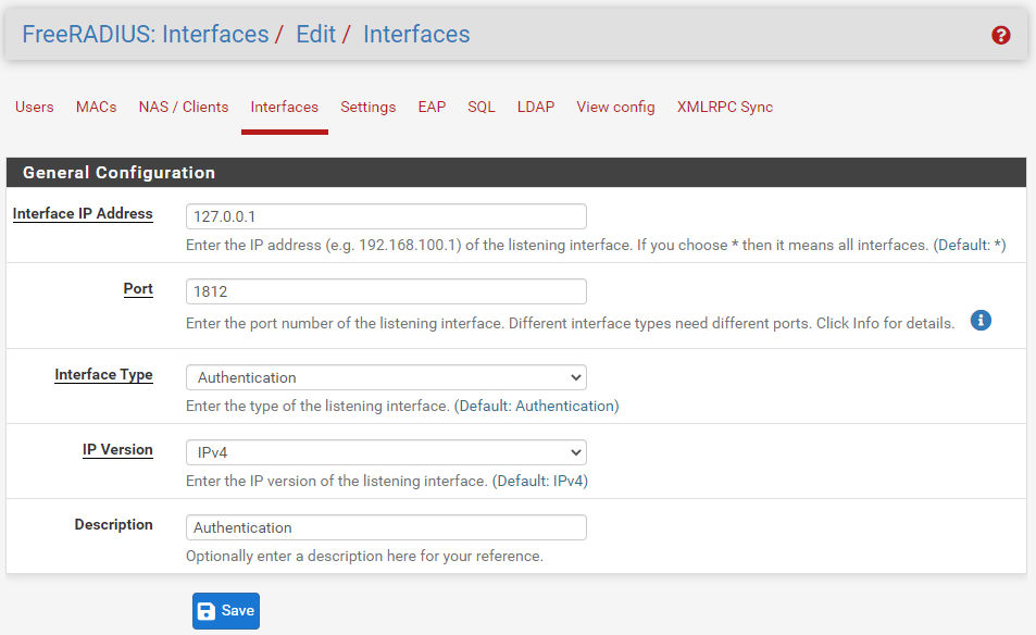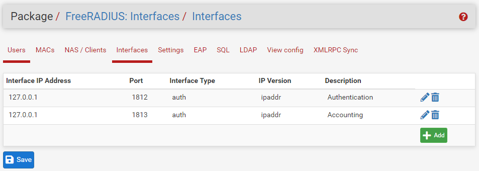 Package > FreeRADIUS: Interfaces > Interfaces