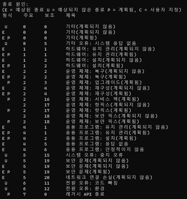 yy는 보조 원인 번호(65536 미만의 양의 정수)입니다.