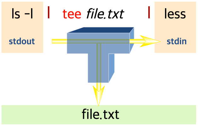 이 맨페이지는 GNU 버전의 tee 를 다룬다. tee 명령은 표준입력으로부터의 입력을 표준출력 또는 인수로 주어진 화일에 복사한다.
