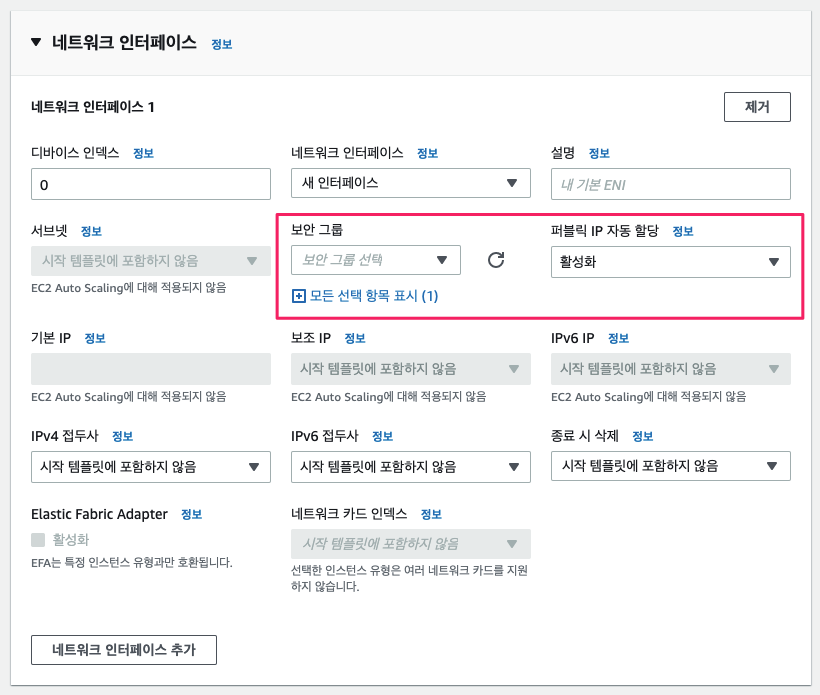 - 퍼블릭 IP 자동 할당 : 활성화