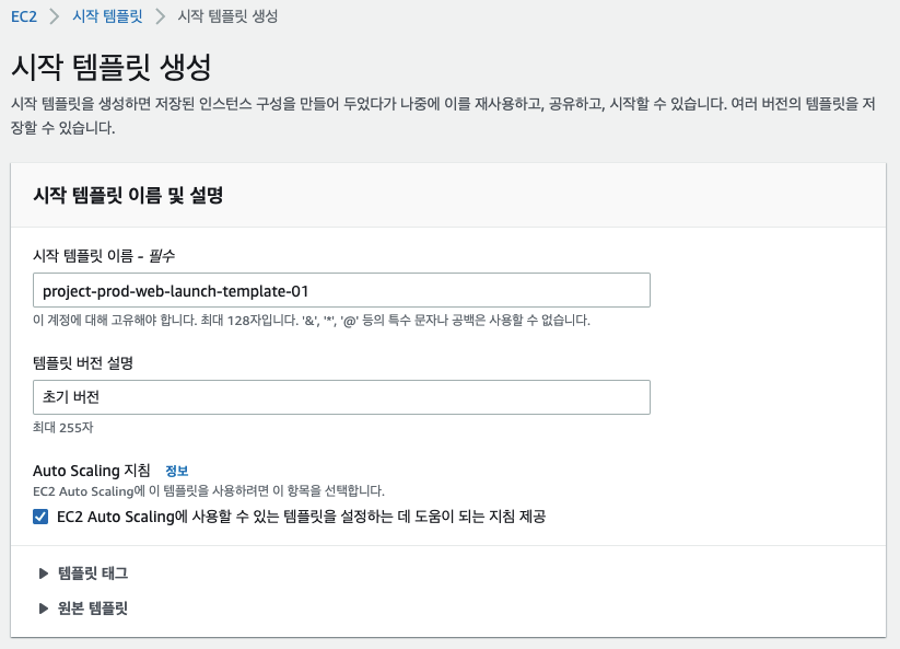 - 시작 템플릿 이름 : project-prod-web-launch-template-01