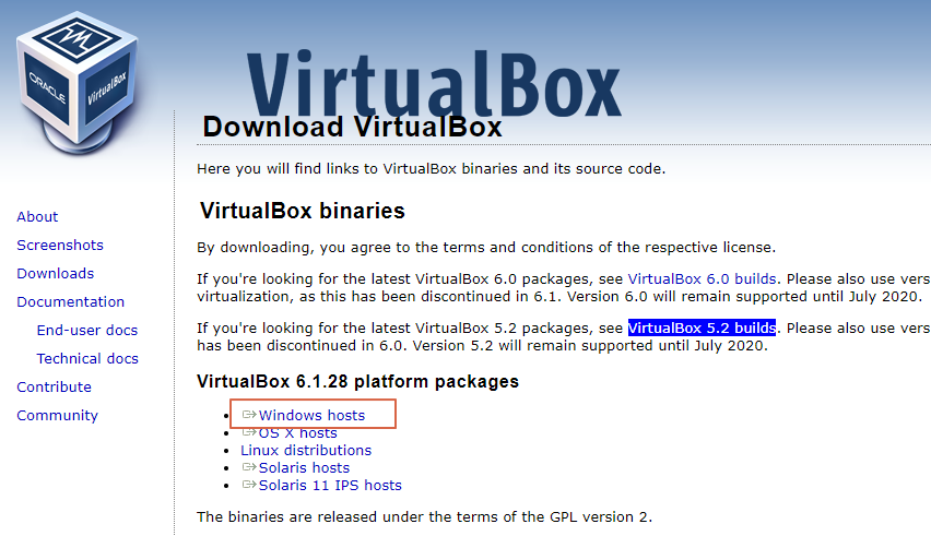 1. VirtualBox 웹사이트에 접속하여 최신 버전의 VirtualBox를 다운로드합니다.