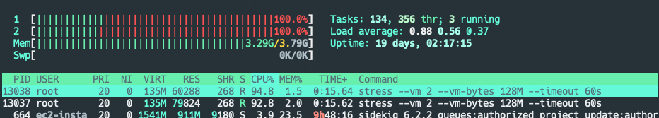 stress --vm 2 --vm-bytes 25 19958 19957 203244
