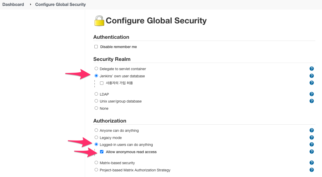 - 익명 사용자(anonymous user)로 Jenkins에 액세스(패스워드 없이 로그인)