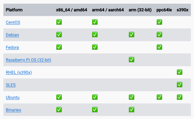 - Linux 배포판 및 아키텍처의 .deb 및 .rpm 패키지를 제공합니다.