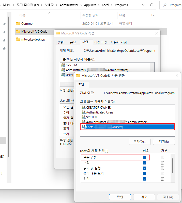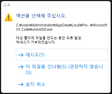 Visual Studio Code(vscode) unins000.exe 액세스 거부 오류