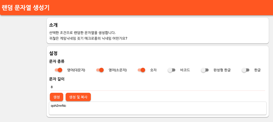 랜덤 문자열 생성기