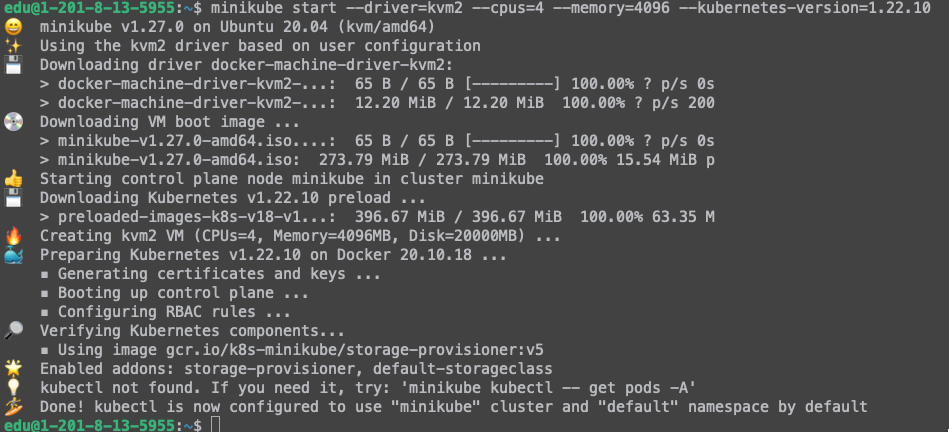 minikube start --driver=kvm2 --cpus=4 --memory=4096 --kubernetes-version=1.22.10