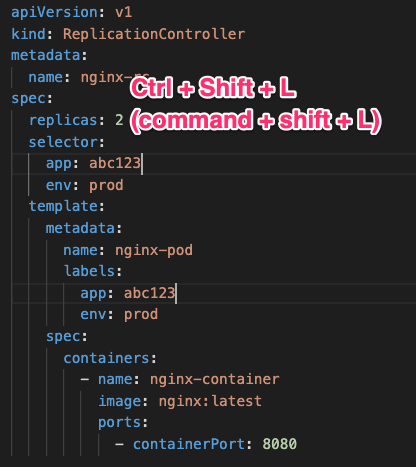 Ctrl + Shift + L -> 지정 블록 수정