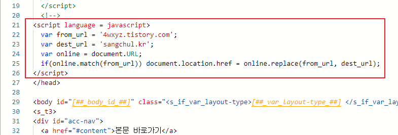 4wxyz.tistory.com 티스토리 블로그 도메인을 sangchul.kr 도메인으로 리다이렉트 설정하기