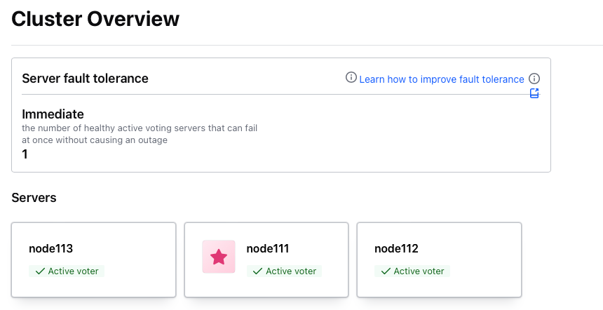 Node ID Address State Voter RaftProtocol Commit Index Trails Leader By