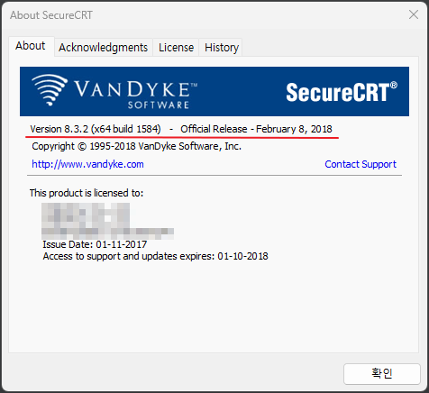 SecureCRT를 최신 버전으로 업데이트하십시오. 오래된 버전의 SSH 클라이언트에서는 일부 최신 SSH 키 유형을 지원하지 않을 수 있으며, 업데이트로 이 문제를 해결할 수 있습니다.