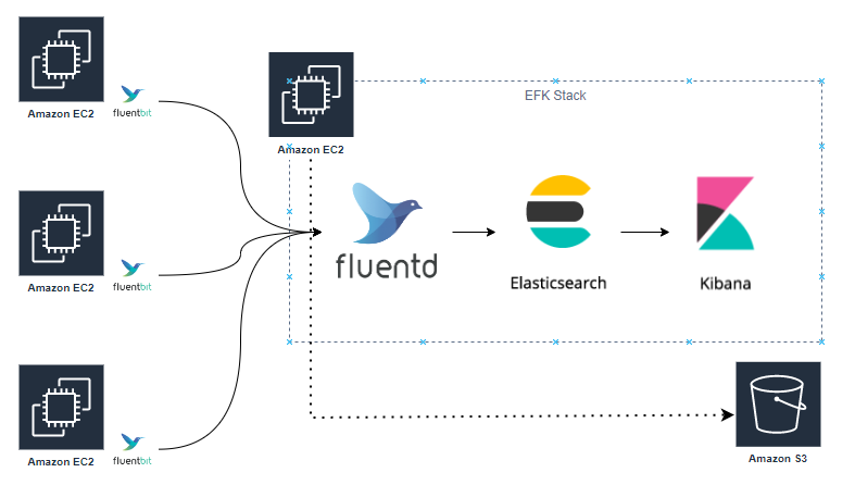[Web Server(Fluent Bit Agent)] --- [Fluentd] --- [Elasticsearch] --- [Kibana]