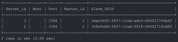 - 마스터 서버에서 슬레이브 서버의 호스트와 포트 정보를 확인