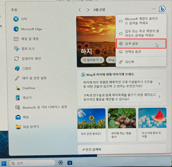 - "검색"을 가리키고 마우스 오른쪽 버튼을 클릭합니다.