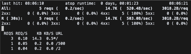 apachetop을 실행하여 실시간 트래픽을 모니터링합니다.