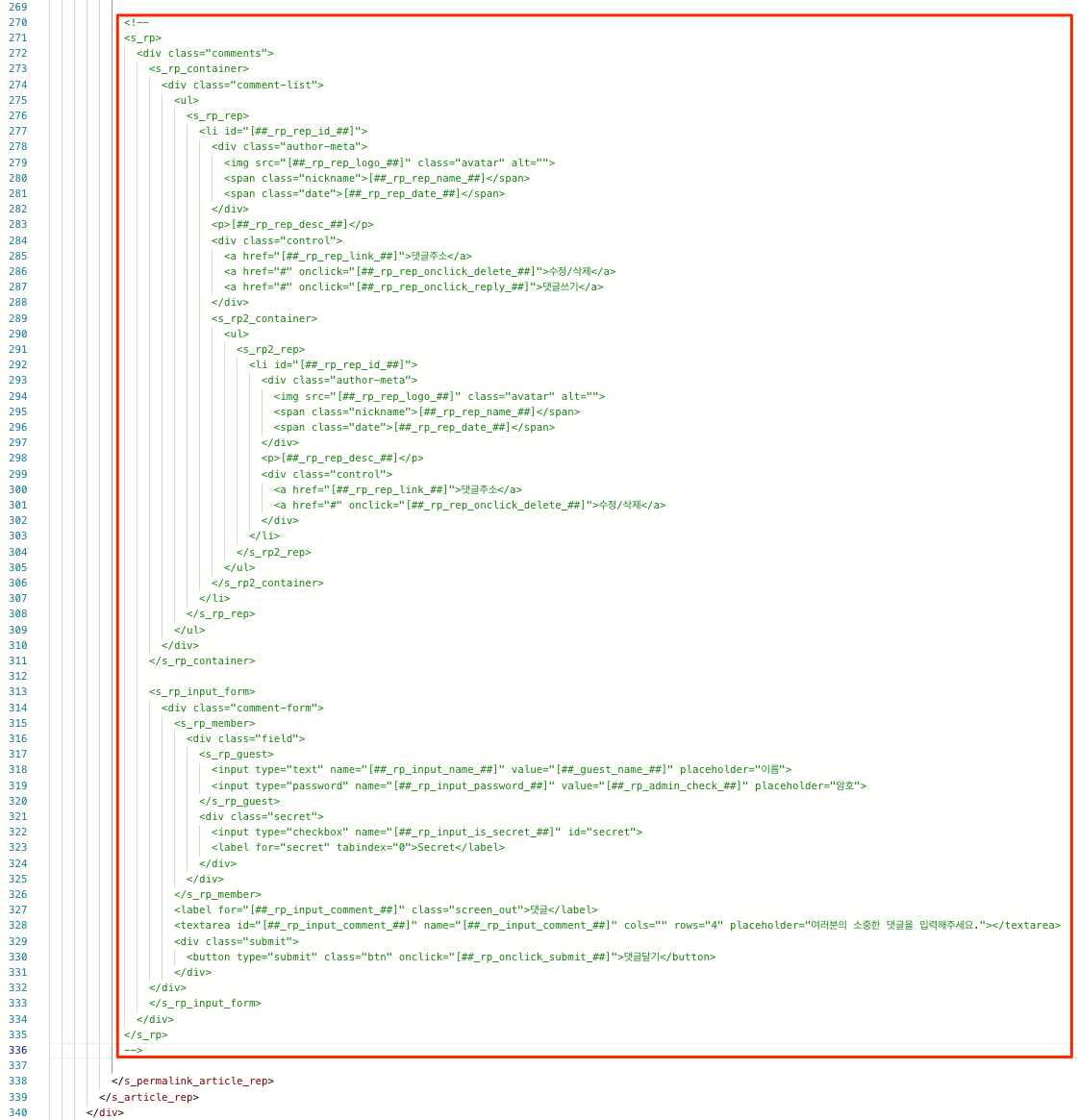 - <s_rp>부터 </s_rp>까지 모든 코드를 주석 처리합니다.