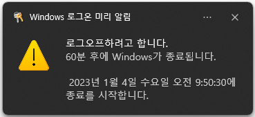 shutdown -s -t 60 -c "1분 후 컴퓨터가 종료됩니다."
