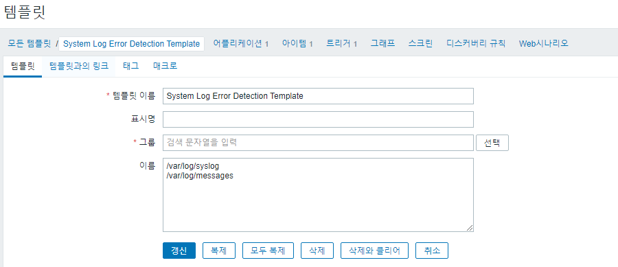 - 템플릿 이름 : System Log Error Detection Template