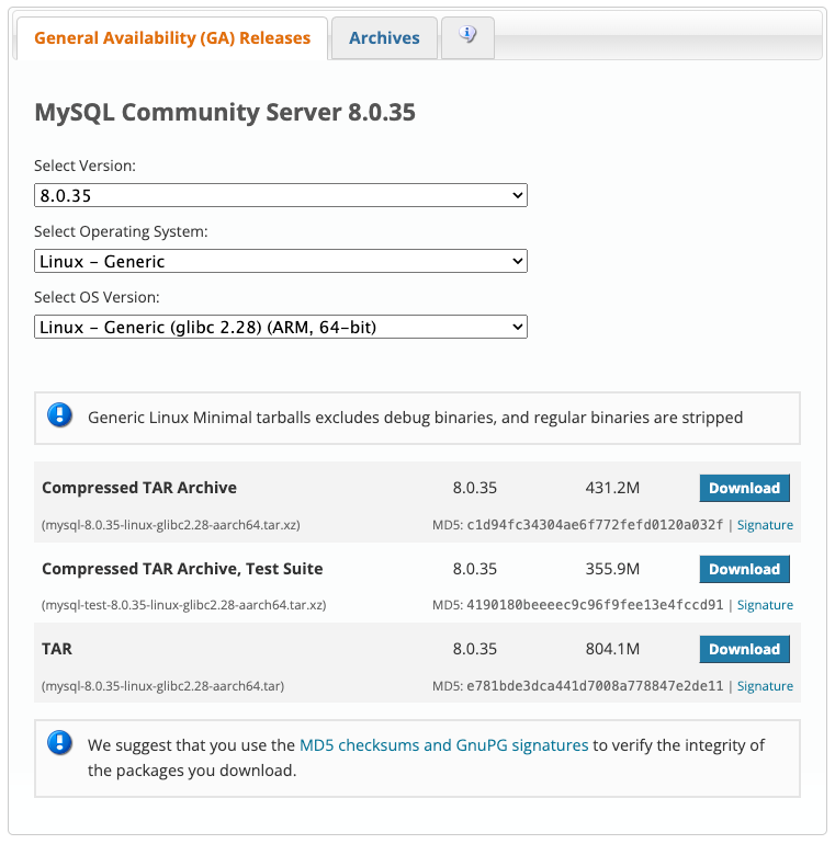 wget https://dev.mysql.com/get/Downloads/MySQL-8.0/mysql-8.0.35-linux-glibc2.28-aarch64.tar.xz