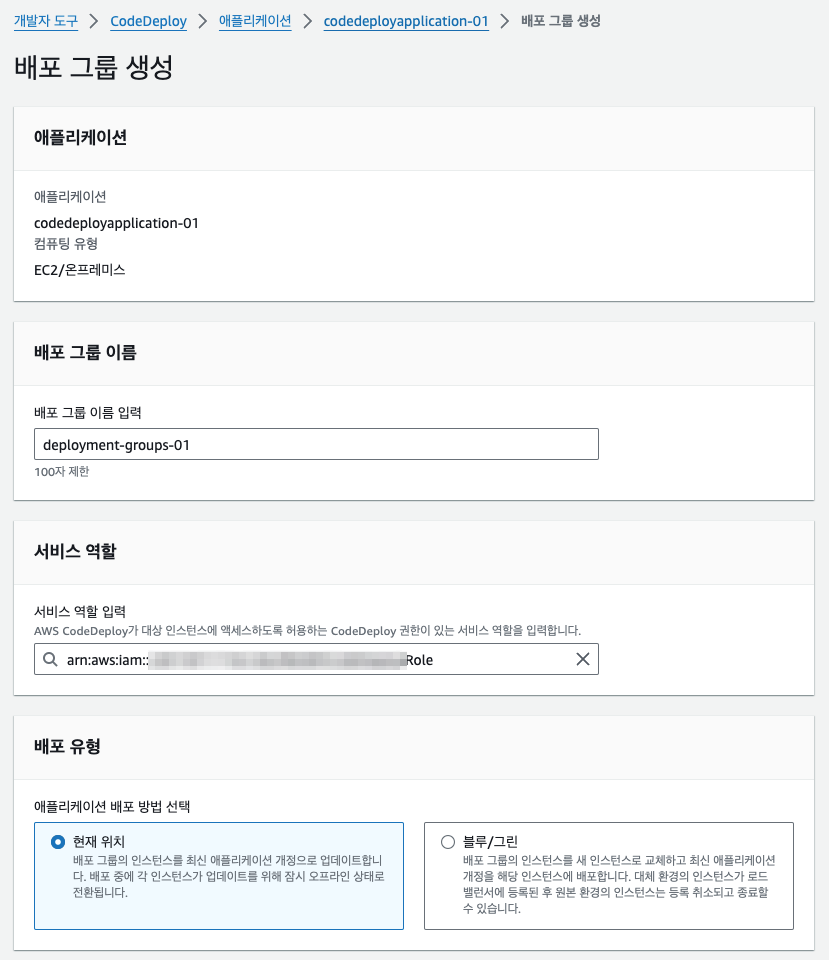 - 서비스 역할 ARN : arn:aws:iam::222:role/AWSCodeDeployRole