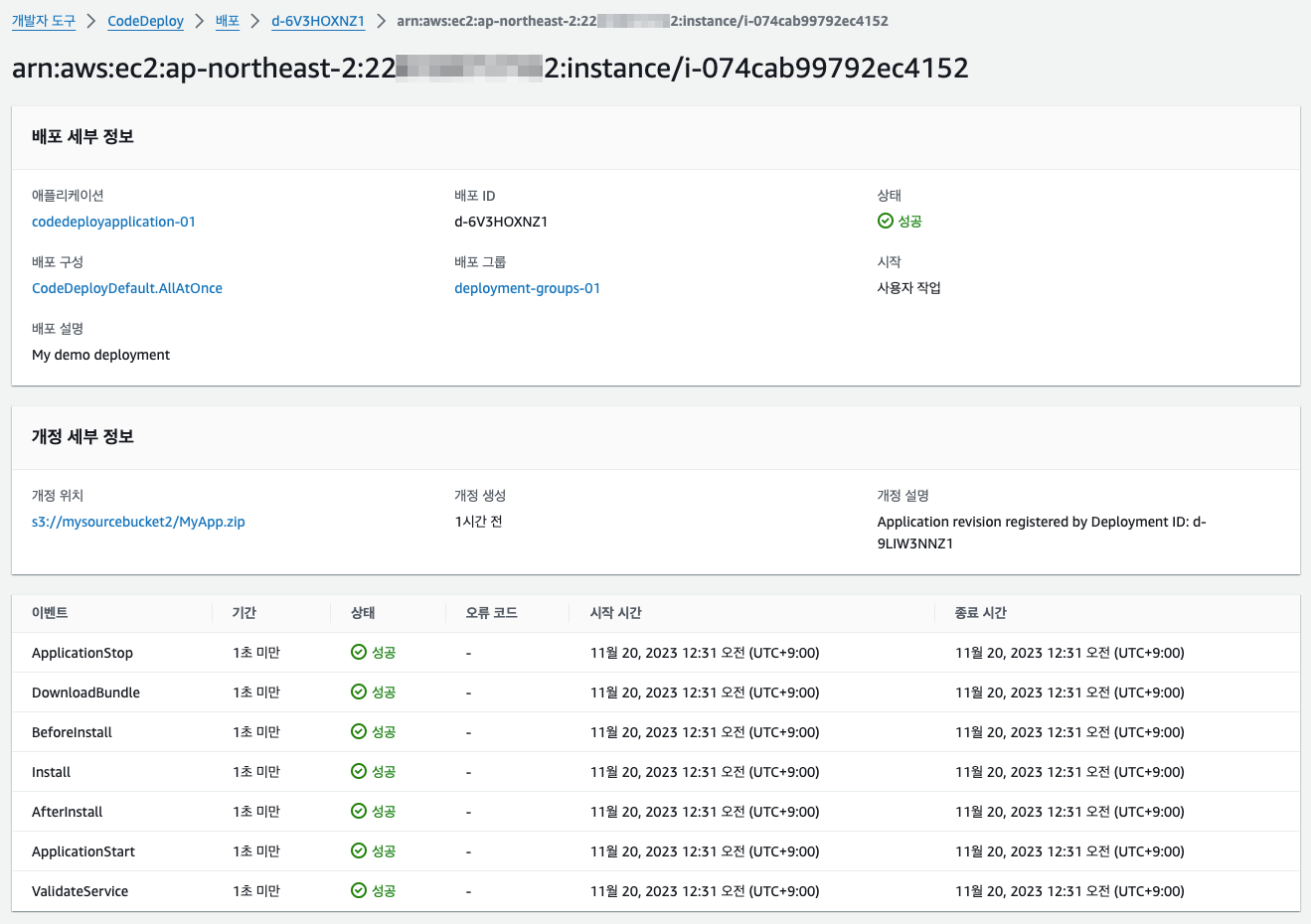 - YourApplicationName : CodeDeploy 애플리케이션의 이름