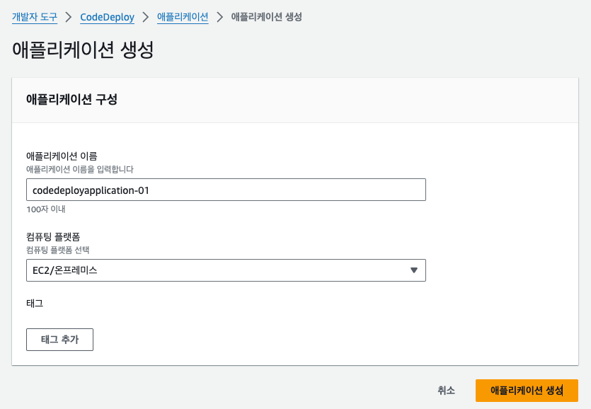 - 애플리케이션 이름 : codedeployapplication-01