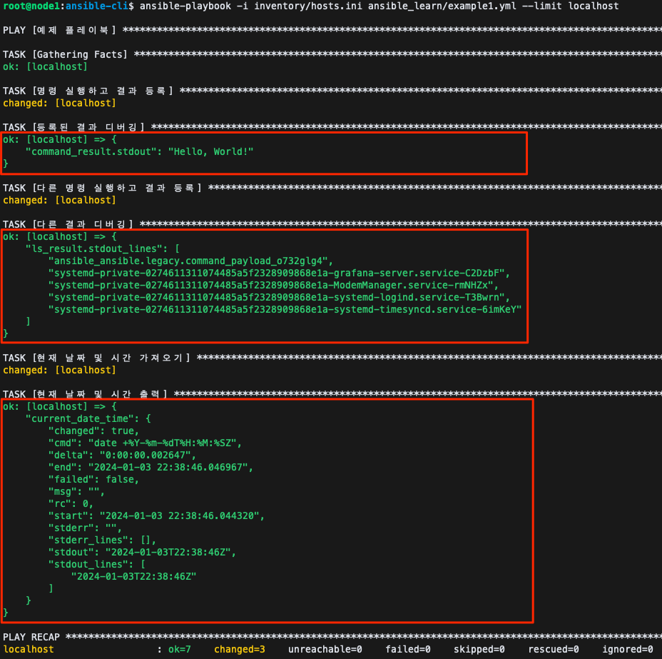 register를 사용하여 명령 실행 결과를 변수에 저장하고, 이후에 debug 모듈을 사용하여 해당 변수를 출력하여 결과를 확인할 수 있습니다.