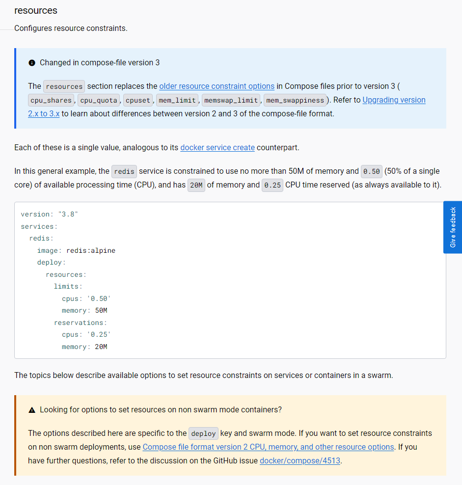 docker compose 리소스 제약 조건 구성(docker compose resource)