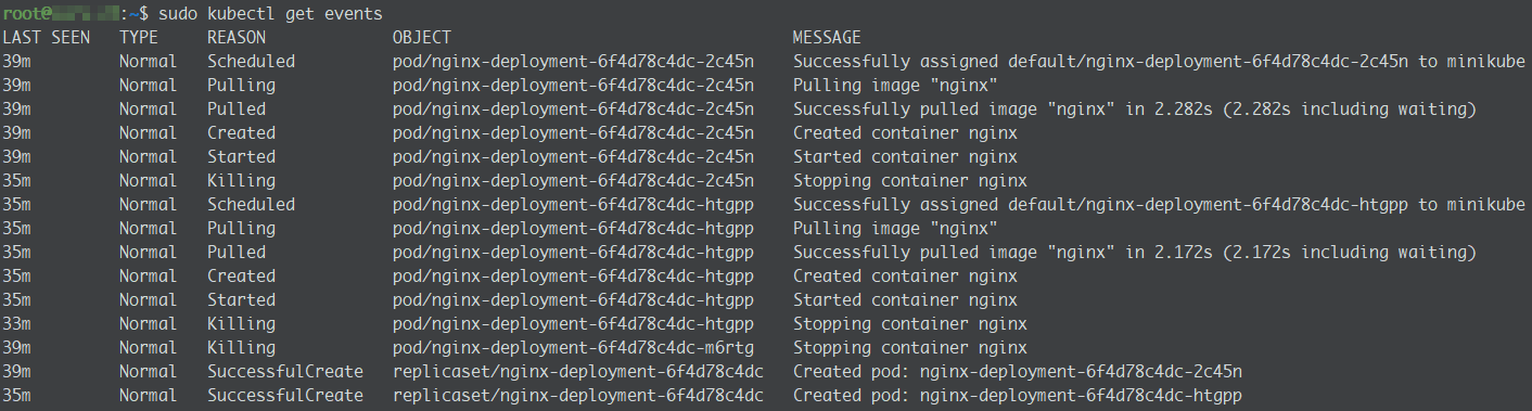 sudo kubectl get events