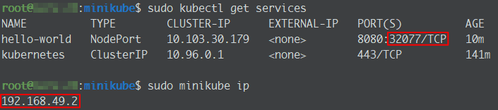 hello-world NodePort 10.103.30.179 <none> 8080:32077/TCP 2m38s