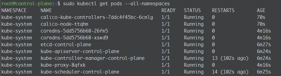 sudo kubectl get pods --all-namespaces