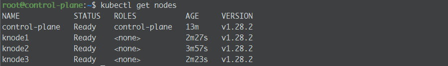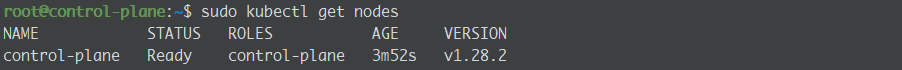 control-plane Ready control-plane 6m6s v1.28.2 192.168.56.51 <none> Ubuntu 22.04.2 LTS 5.15.0-94-generic containerd://1.6.28
