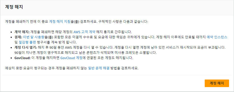 - AWS re:Post : / 지식 센터 / AWS 계정을 해지하려면 어떻게 해야 하나요?
