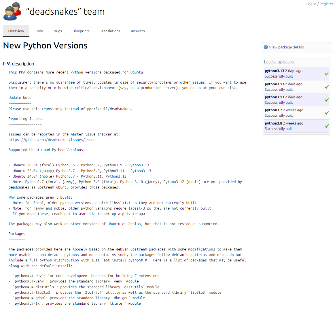 1. PPA(deadsnakes) 등록하여 최신 버전의 파이썬를 설치하는 방법
