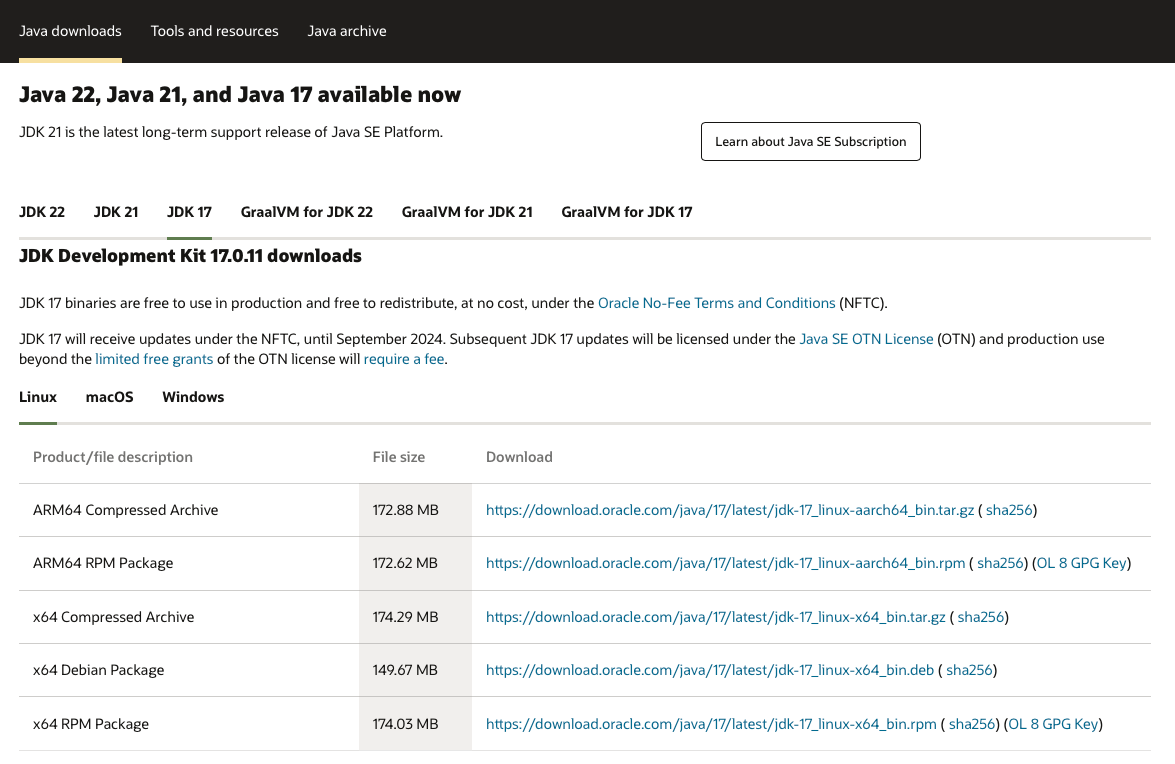 wget https://download.oracle.com/java/17/archive/jdk-17.0.10_linux-aarch64_bin.tar.gz