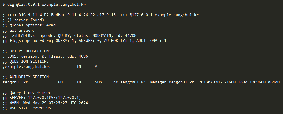 dig @127.0.0.1 example.sangchul.kr