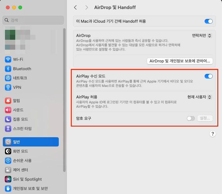 - macOS 사용 설명서 : Mac에서 AirPlay 수신 모드 환경설정 변경하기