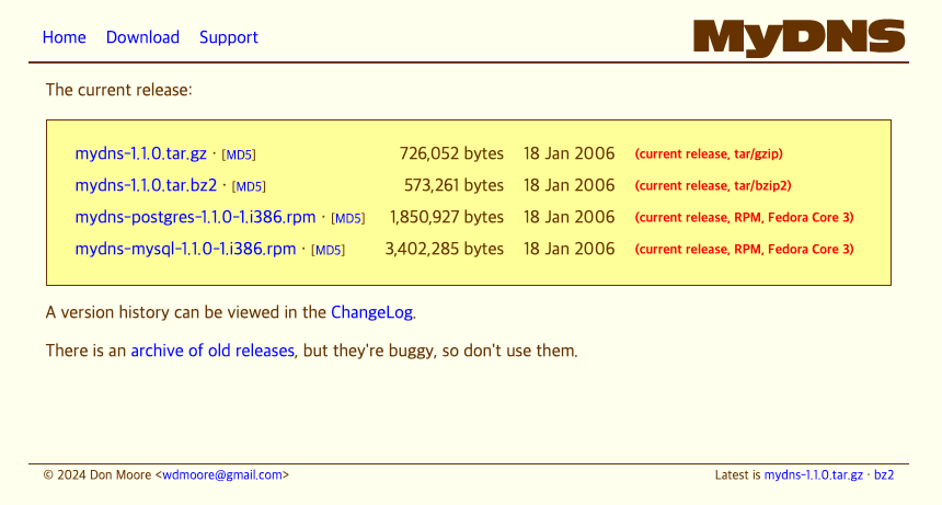 wget http://mydns.bboy.net/download/mydns-1.1.0.tar.gz