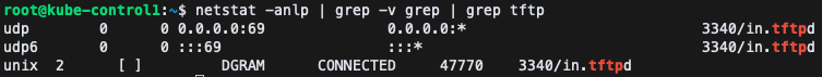 └─3340 /usr/sbin/in.tftpd --listen --user tftp --address :69 --secure /srv/tftp