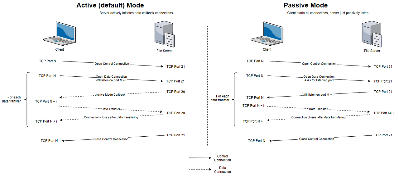Active vs. Passive Modes Connection Flows